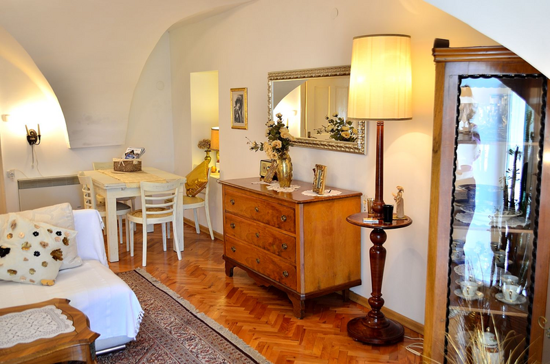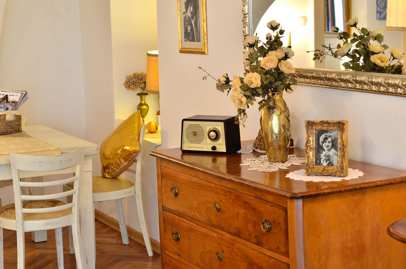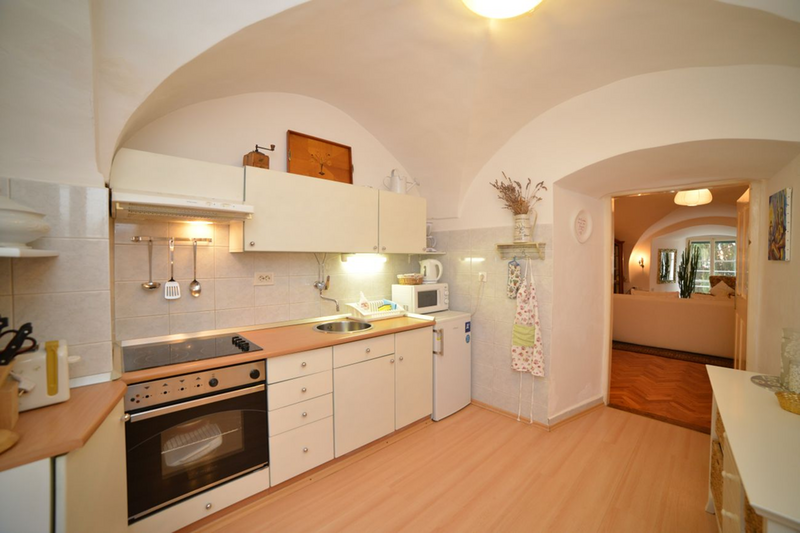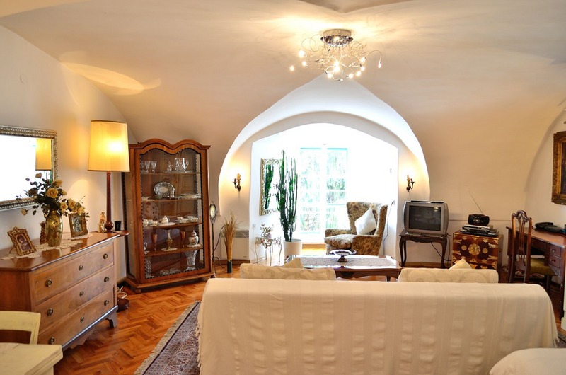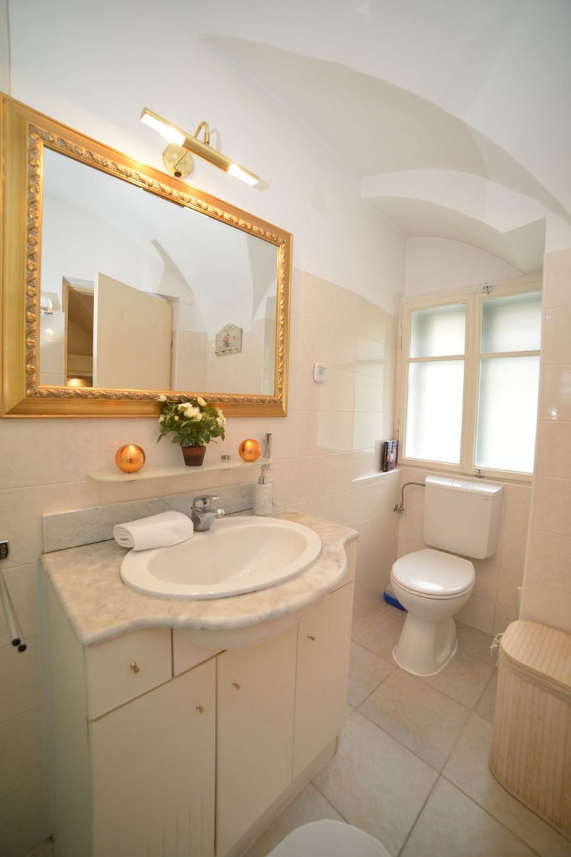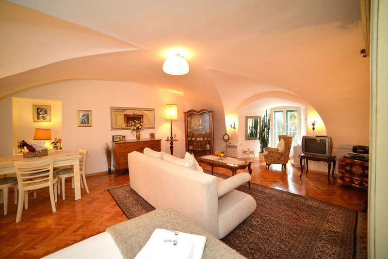 Palača u kojoj je stan smješten potpuno je novo obnovljena i uređena. Stan je također novo renoviran i namješten. Sastoji se od prostrane dnevne sobe s tipičnim baroknim svodovima, radnim kutkom (wireless internet), prostora za spavanje (bračni krevet) i blagovaonskog dijela (za 4 osobe), potpuno opremljene kuhinje (štednjak, pećnica, hladnjak/zamrzivač, mikrovalna, aparat za kavu, toaster, kuhalo za vodu) i kupaonice (tuš kabina, perilica rublja, WC). Također su na raspolaganju wireless internet, max TV sa 60 programa, DVD/CD player, telefon (plaća se prema potrošnji), sušilo za kosu, glačalo i stol za glačanje. Cijena najma uključuje osnovne namirnice poput kave, čaja, ulja, octa, soli, začina te deterdžent i omekšivač za pranje rublja.